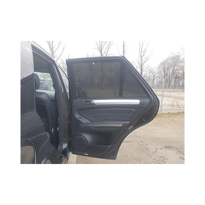 Zasłonki zrobione są pod wymiar do Mercedes-Benz ML II W164 (2005-2011) . Idealne na wakacyjne wyjazdy np, do Chorwacji, Grecji, Hiszpanii jak również na upalne wyjazdy po kraju. Alternatywa dla drogiego przyciemniania szyb. Chronią przed słońcem i insektami. Nadają wygląd przyciemnianych szyb.