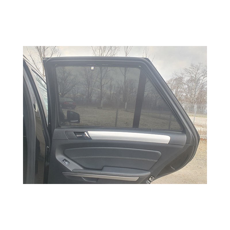 Zasłonki zrobione są pod wymiar do Mercedes-Benz ML II W164 (2005-2011) . Idealne na wakacyjne wyjazdy np, do Chorwacji, Grecji, Hiszpanii jak również na upalne wyjazdy po kraju. Alternatywa dla drogiego przyciemniania szyb. Chronią przed słońcem i insektami. Nadają wygląd przyciemnianych szyb.