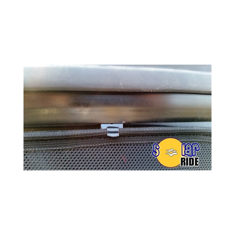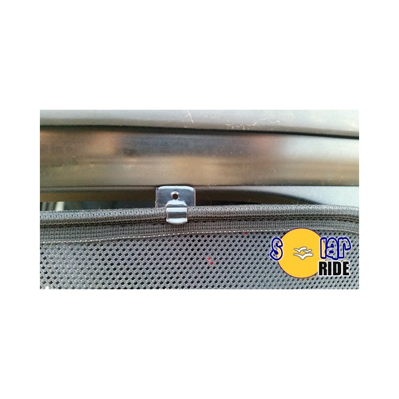 Sada - 6-ti dílů. Clony stíní zevnitř celou plochu oken. Jednoduchá montáž/demontáž nasazením zevnitř vozu. Clony jsou vyrobeny z černé tkaniny.