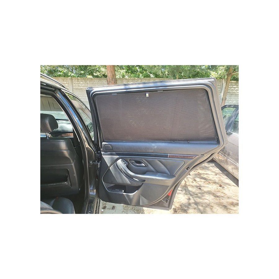 Solskærm, solskærmen, solafskærmning til BMW 5 E39 STATIONCAR / TOURING (1995-2003) til bagdøre ,sideruder ved bagsæde samt bagrude. Sættet består af 6-dele. Let at montere og afmontere.