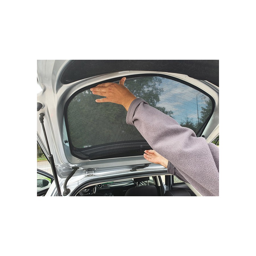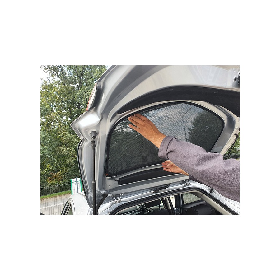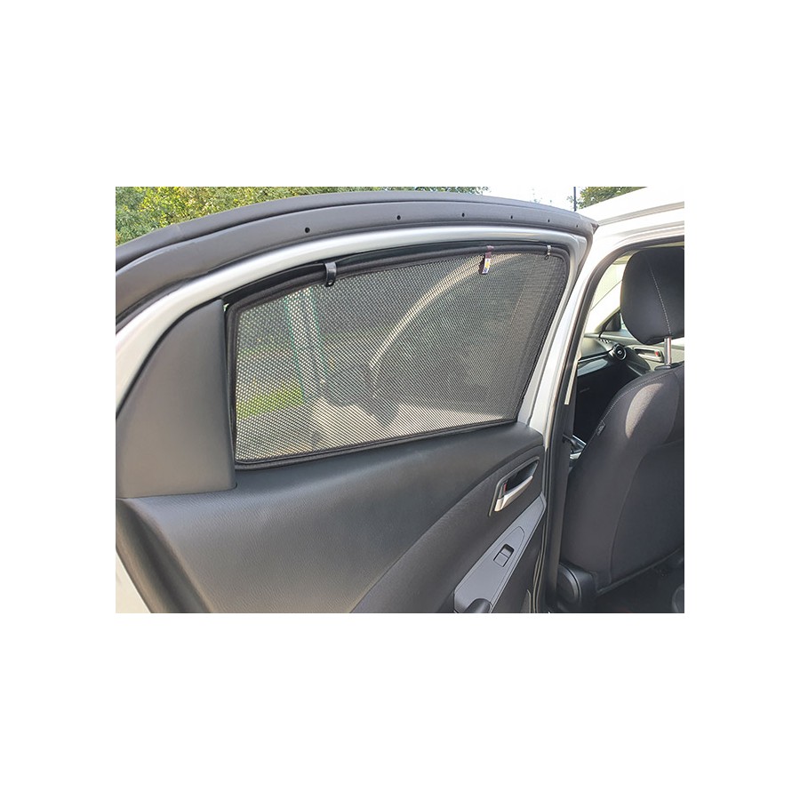 Solskærm, solskærmen, solafskærmning til Mazda 2 III 2014- til bagdøre , samt bagrude. Sættet består af 3-dele. Let at montere og afmontere.