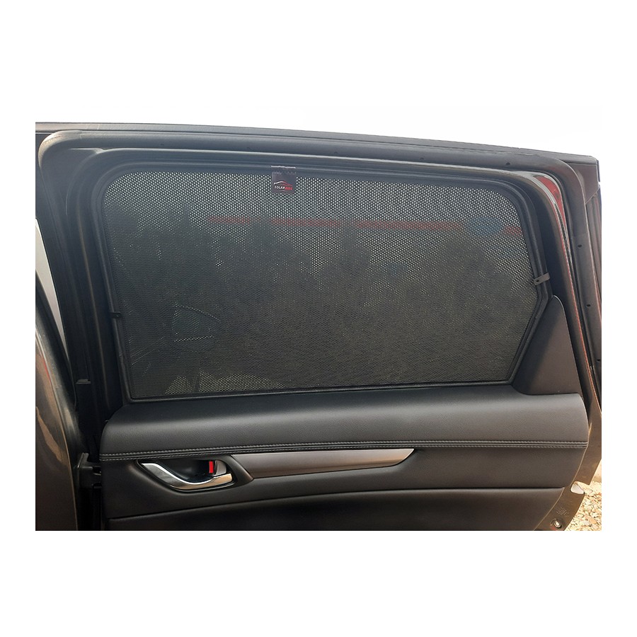 Solskærm, solskærmen, solafskærmning til MAZDA CX5 CX-5 II 2017- til bagdøre ,sideruder ved bagsæde samt bagrude. Sættet består af 5-dele. Let at montere og afmontere.