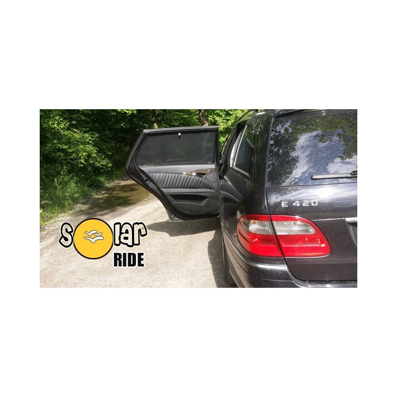 Solskærm, solskærmen, solafskærmning til Mercedes-Benz W211 E-Klasse Stationcar (2002-2009) til bagdøre ,sideruder ved bagsæde samt bagrude. Sættet består af 5-dele. Let at montere og afmontere.
