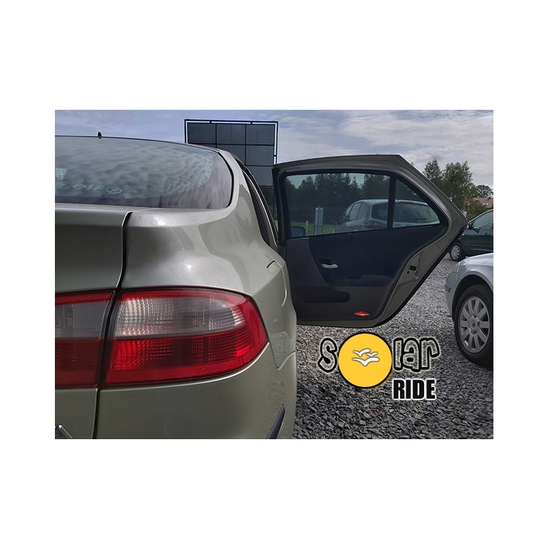 Solskærm, solskærmen, solafskærmning til Renault Laguna II 2001-2007 5-dørs Combi coupé- til brug for ruderne i de to bagerste døre. Sættet består af 2-dele. Let at montere og afmontere.