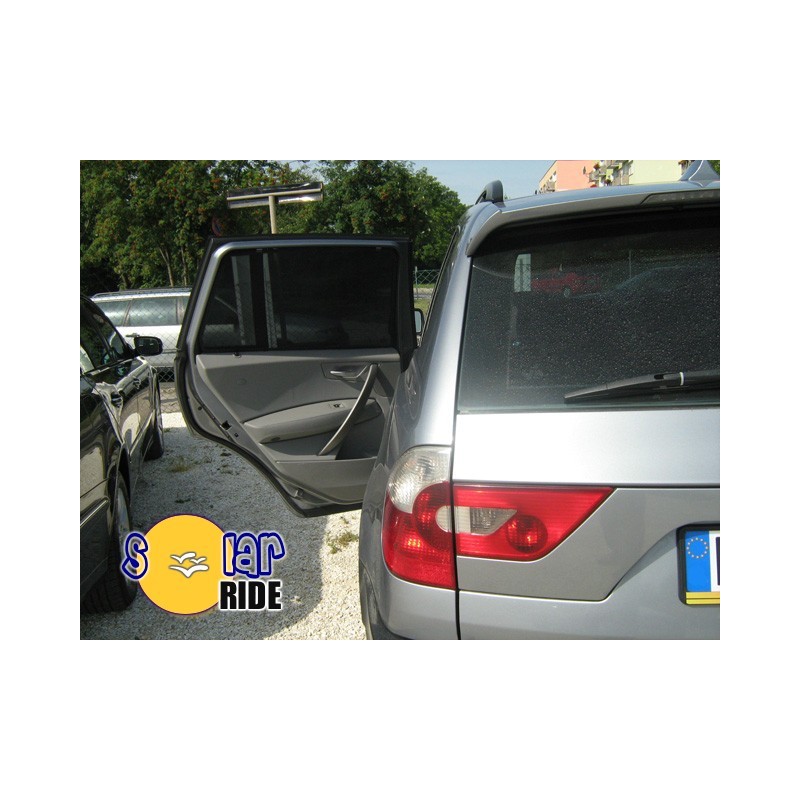 Autozonwering BMW X3 E83 (2003-2010). Achterste zijramen en achterruit. Originele pasvorm. De set bestaat uit 6 autozonwering ( zonneschermen )
