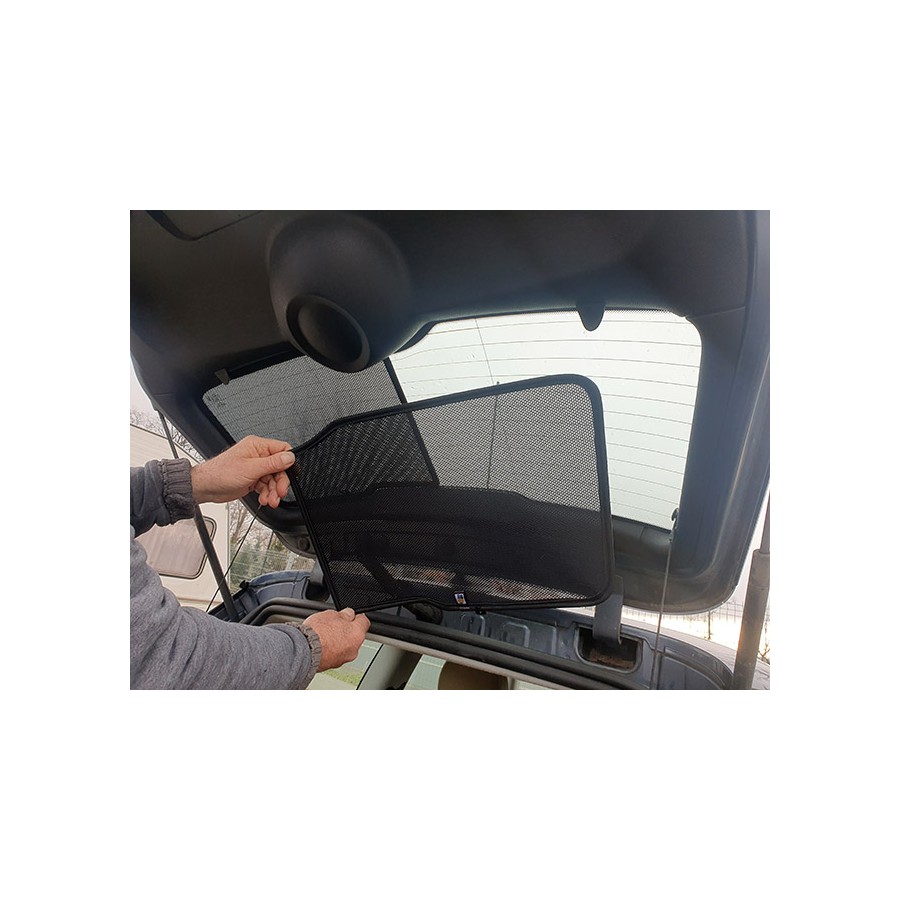 Achterste zijramen en achterruit. Originele pasvorm. De set bestaat uit 4 autozonwering ( zonneschermen )