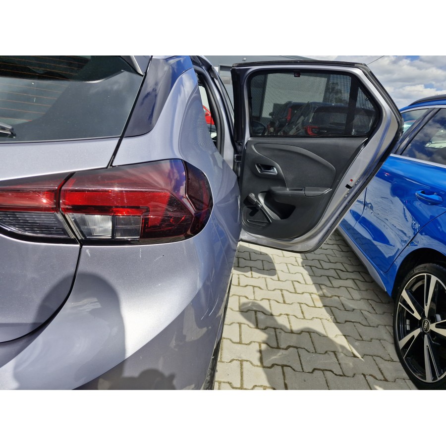 Autozonwering Opel Corsa F / Opel Corsa-e (2019-heden) .Achterste zijramen en achterruit. Originele pasvorm. De set bestaat uit 3 autozonwering ( zonneschermen )