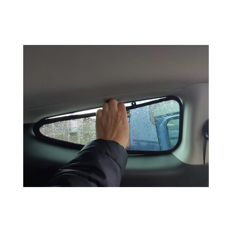 Achterste zijramen en achterruit.. Originele pasvorm. De set bestaat uit 3 autozonwering ( zonneschermen )