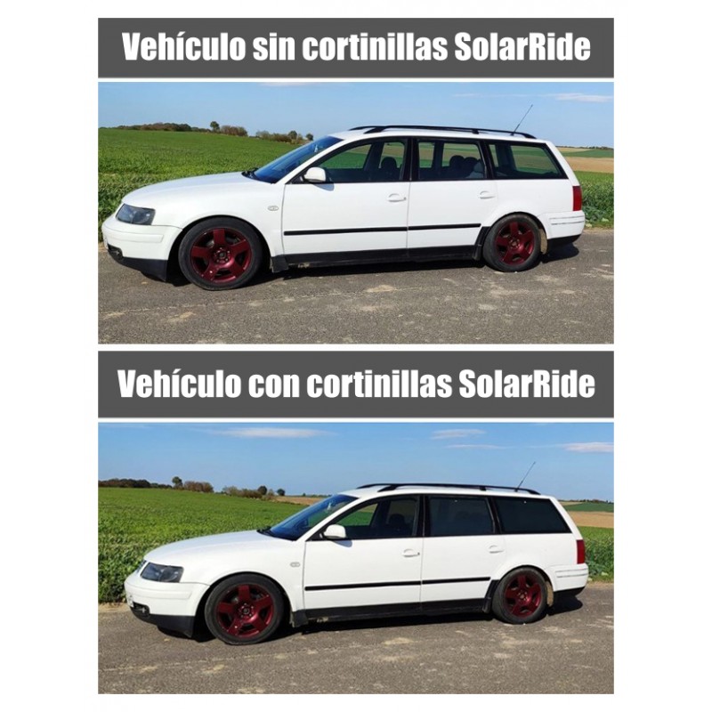 Skyddar medpassagerare från solljus. Håller bilinteriören svalare. Snabb och enkel montering.